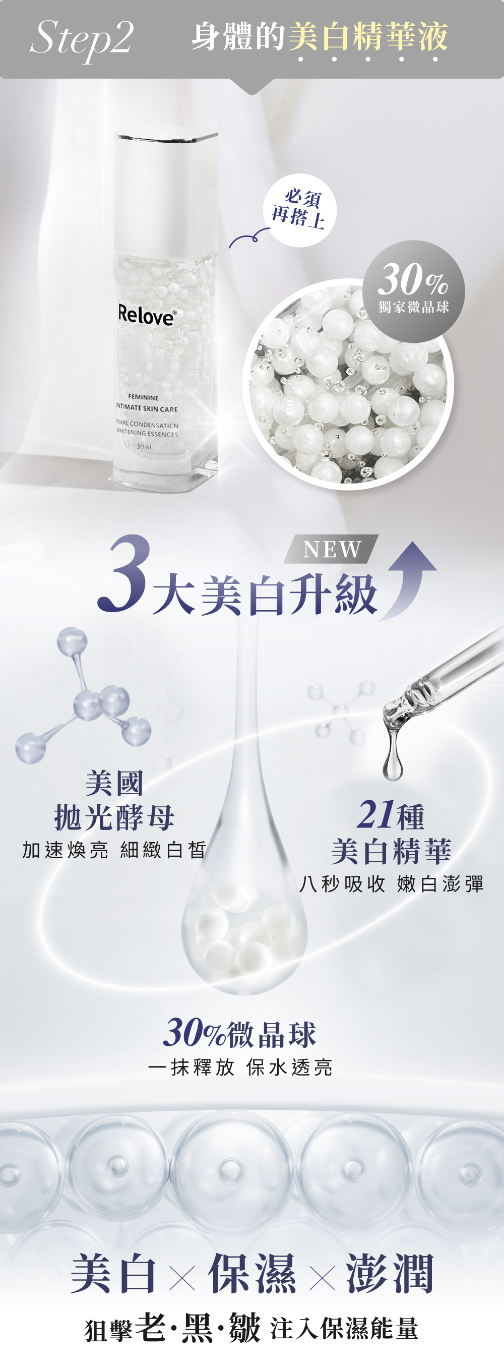 此組合包含:Relove 私密潔淨凝露120ml x1 + Relove 私密美白賦活晶球凝露30ml x1